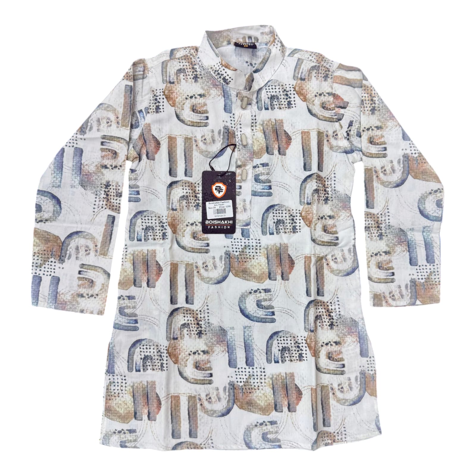✨ পণ্যের নাম: বৈশাখী স্টাইল প্রিন্টেড সফট কটন পাঞ্জাবি